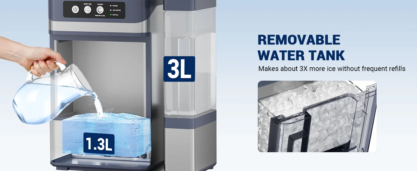 Large Capacity – 0.8-gallon removable water tank reduces refills and makes 3x more ice than smaller models.